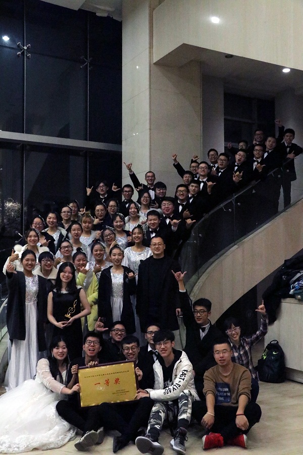 11月11日,由校大学生文化素质教育基地主办的第九届大学生合唱与重唱艺术比赛于启航剧场举行。来自各院系共计12支合唱队伍参加本次比赛,最终,欧冠music code合唱团荣获唯一一等奖。