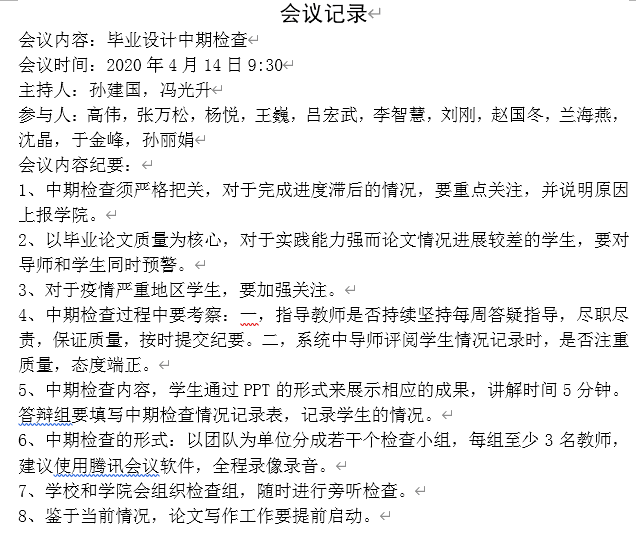 学院毕业设计中期检查会议记录