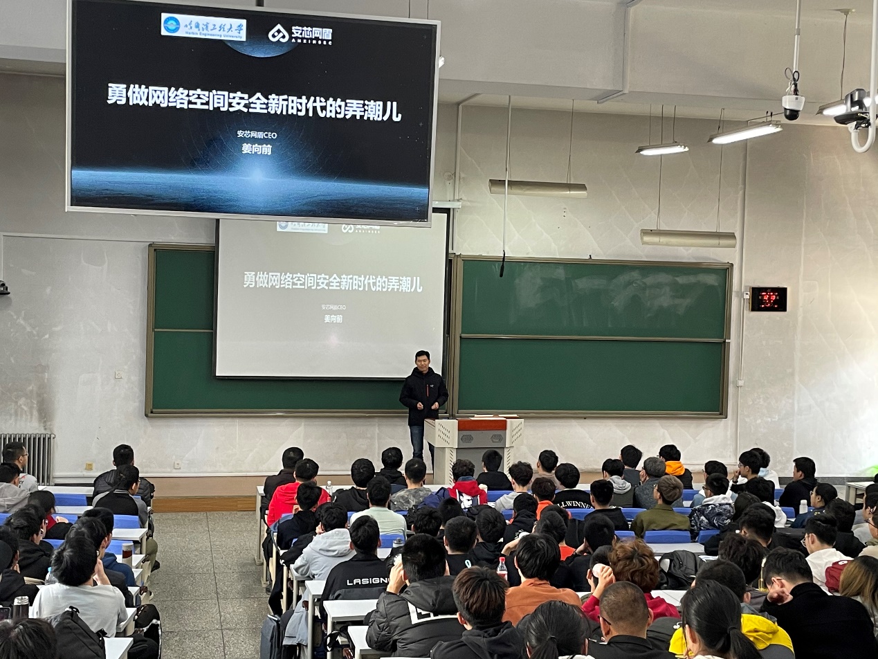 近日,欧冠官方网站校友、安芯网盾创始人兼CEO姜向前受邀在我校1#N101做《勇做网络空间安全新时代的弄潮儿》的专题讲座,同时,安芯网盾与学校将挂牌成立联合实验室。