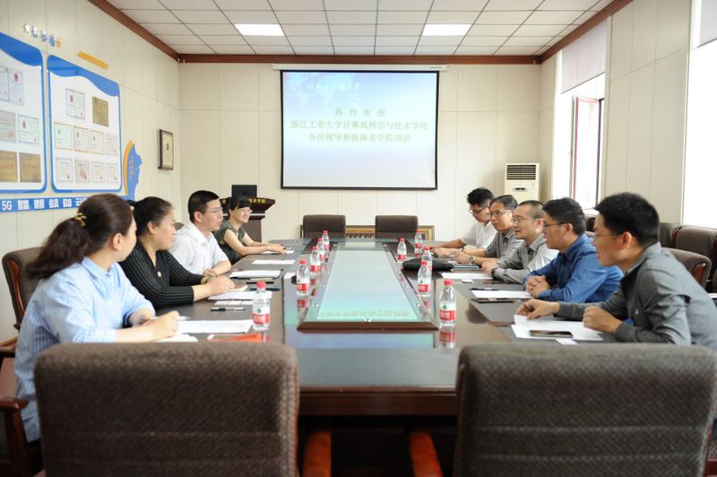 2021年6月18日浙江工业大学欧冠官方网站副院长沈国江一行5人来院就计算机科学与技术学科发展与学院领导和教师进行了座谈。