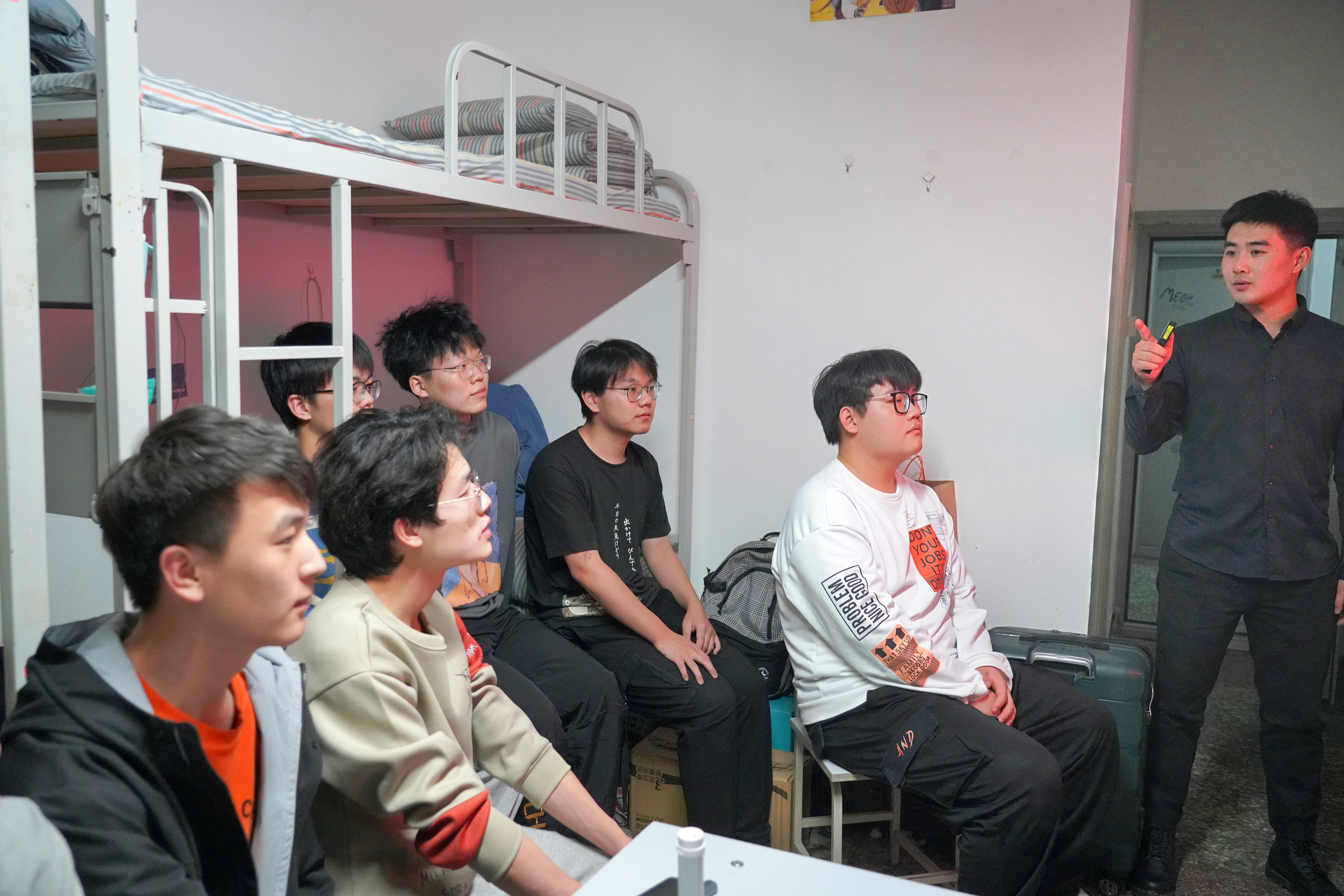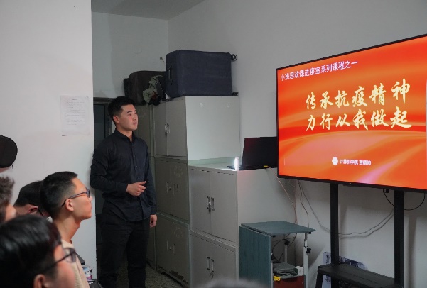 如何做好学生寝室的建设?如何在疫情常态化期间利用寝室发挥好自主管理职能?这些问题是辅导员贾德帅一直想要深入探索和解决的。小班思政课是我校学生工作系统主推的授课模式,长期以来,在学生思想政治教育工作中发挥着重要的力量,取得了一系列成果。“如果能将小班思政课走进寝室,一定能产生优质的育人效果。”在某天上班的途中,这个念头忽然出现在贾德帅的脑中。经过详细论证、充分准备,11月14日,以“传承抗疫精神,力行从我做起”为主题的小班思政课首次走进了学生寝室,截至目前,10公寓768、706、708等十余个寝室开展了寝室小班思政课,反响强烈,很多学生表示,寝室思政课什么时候能来到我的寝室啊!