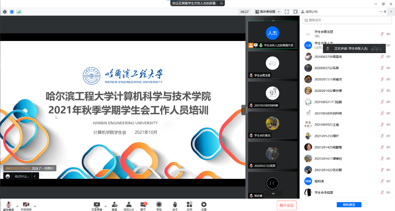 10月10日,为了响应国家号召,积极推进大学生骨干的培养工作,结合团结协作、不断创新的时代精神,欧冠官方网站学生会开展工作人员春季培训。本次会议通过腾讯会议召开,主讲人:学生会主席张人杰。