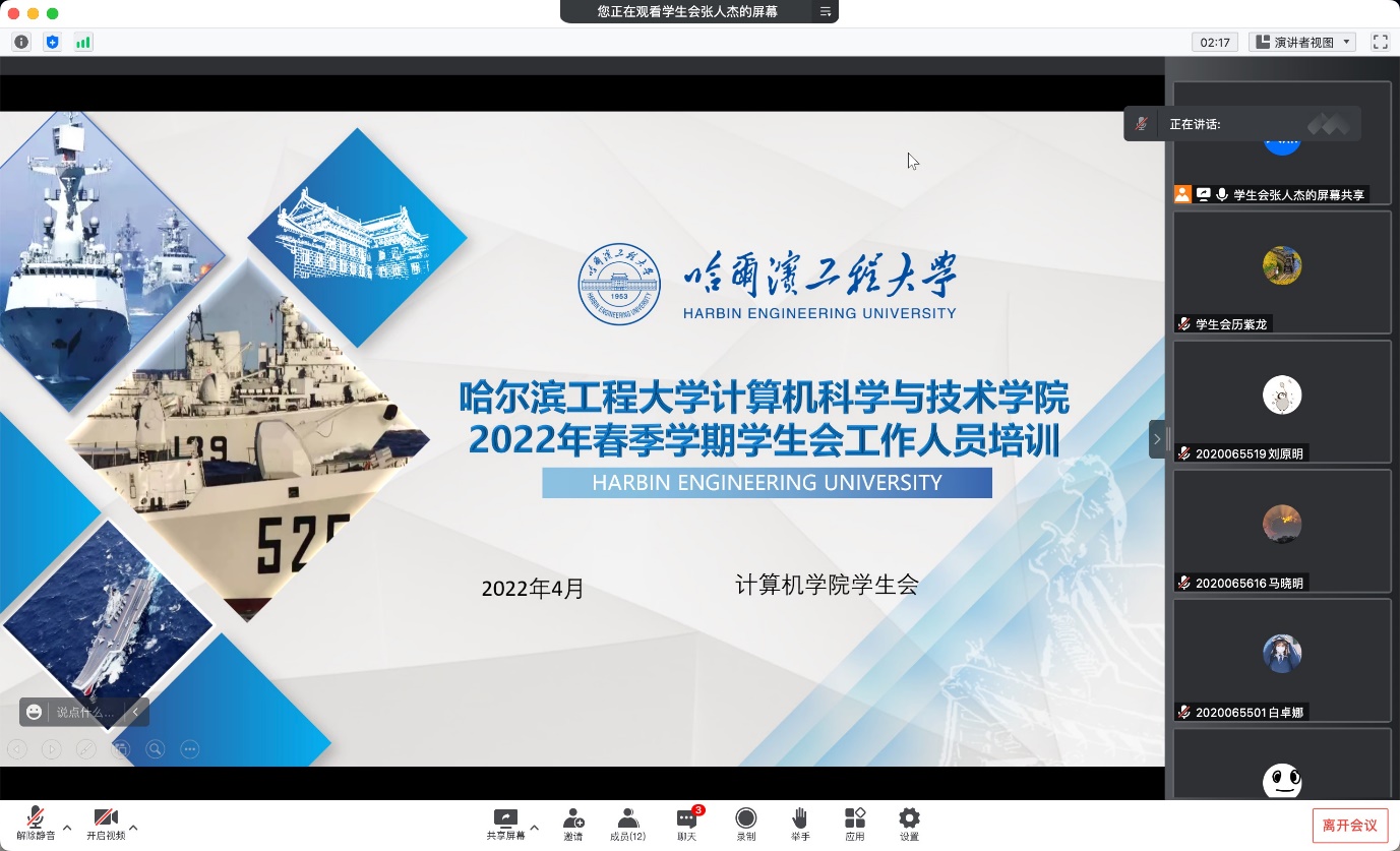 2022年4月14日,欧冠官方网站学生会召开2022年度春季学期全体工作人员培训会议。本次培训主讲人为学生会主席张人杰。