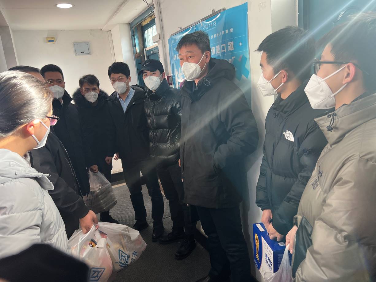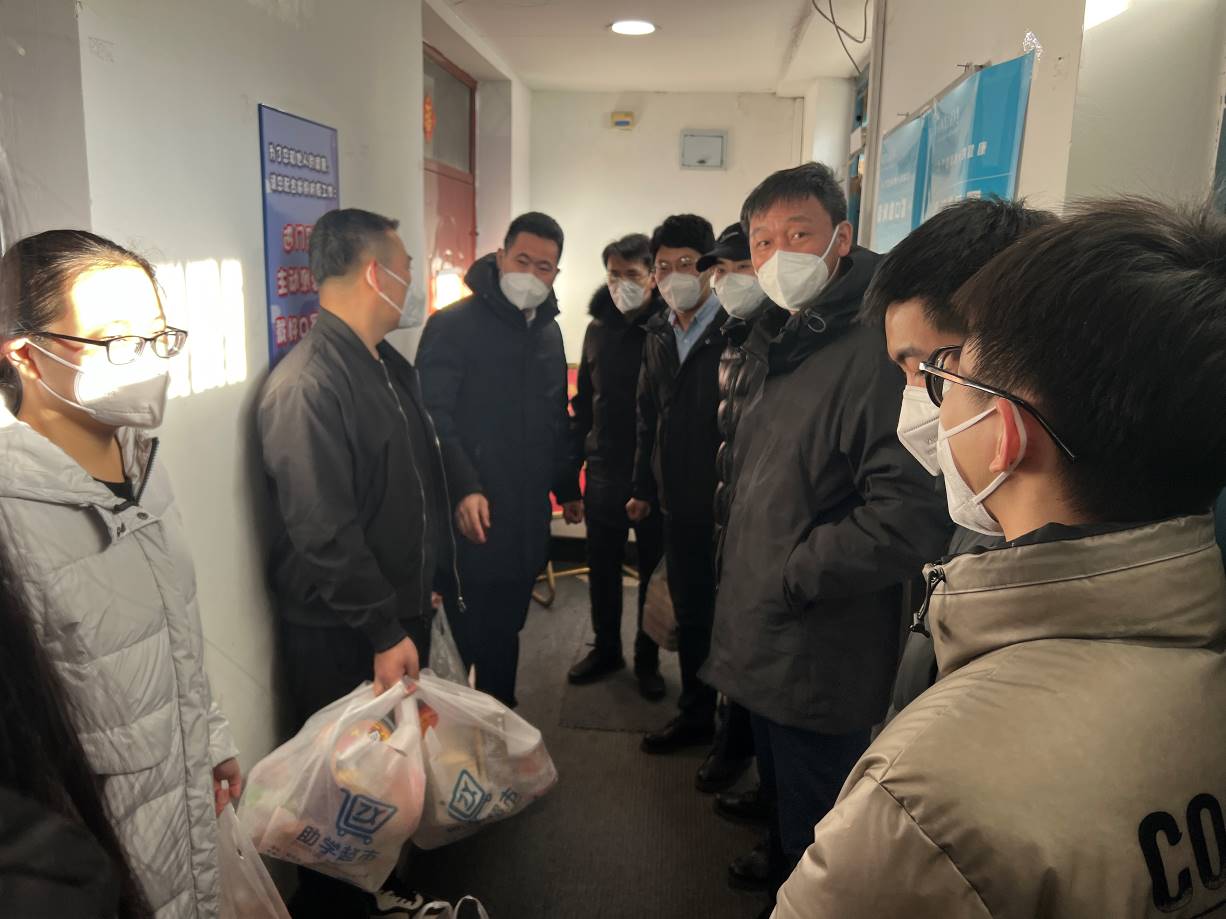 2022年12月15日11:30,党委书记刘冬、院长蔡成涛带领学院综合办公室负责人员,前往欧冠官网中文版34A教师公寓进行走访慰问疫情风控思政教师,贴心的为被风控教师带去了午餐、水果、牛奶、防疫口罩、体温计等物资,同风控教师进行了亲切的交谈,从实际出发了解被风控教师生活、工作情况。刘书记深切表达了对被风控教师的关怀,叮嘱大家一定要做好个人防护、注意身体健康。