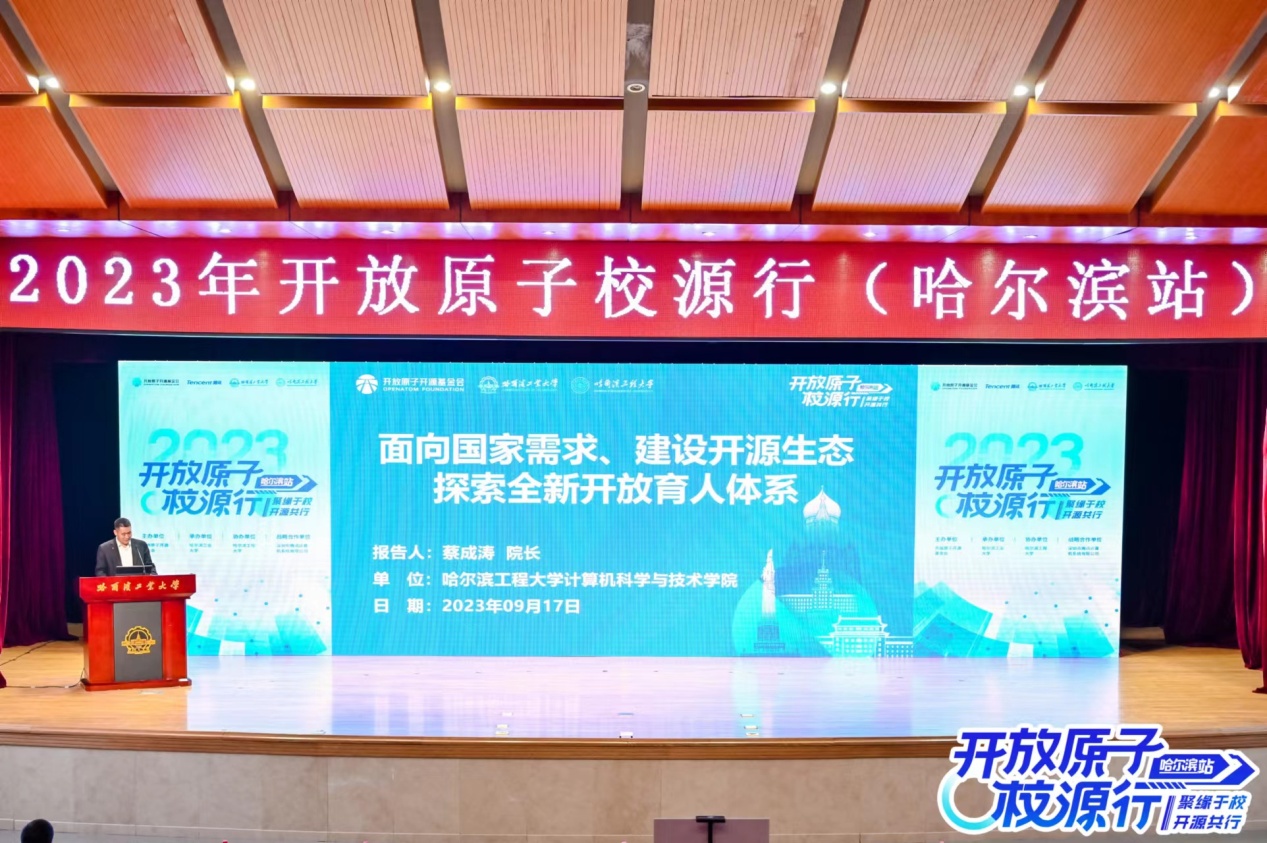 2023年9月17日,由工信部指导,开放原子开源基金会主办,哈尔滨工业大学承办,欧冠官网中文版协办“开放原子校源行”大会。工信部信息技术发展司副司长王威伟、开放原子基金会理事长孙文龙、哈尔滨工业大学副校长刘挺等领导参会并致辞。另有哈尔滨工业大学、欧冠官网中文版、电子科技大学、吉林大学、北京理工大学、华中科技大学、苏州大学、东北林业大学、黑龙江大学、哈尔滨理工大学和腾讯公司等相关领导和开源爱好者参会,大会参会人数达500余人,学院百余名开源学生爱好者参加了会议。会议同时采用线上直播形式同步播出。