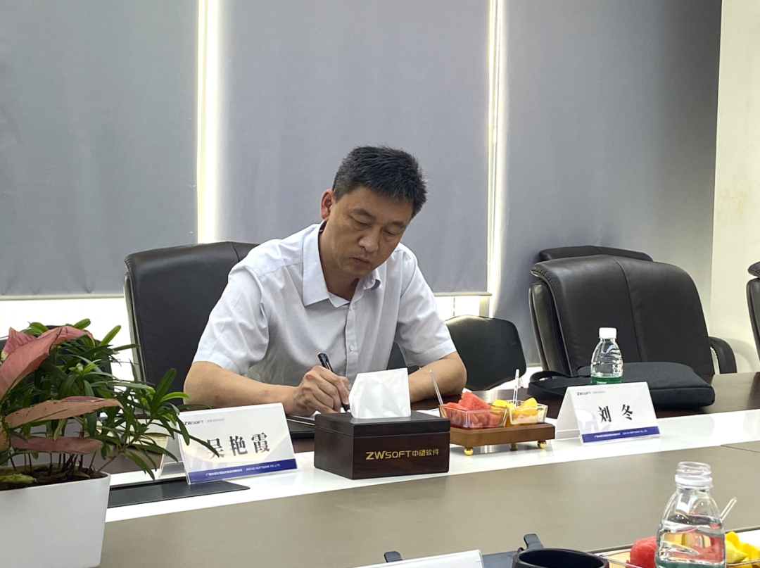 王长民总经理对哈工程刘冬书记一行的到访表示热烈的欢迎,并详细介绍了中望软件企业发展、技术突破以及应用案例。王长民总经理强调中望软件一直致力于国产工业软件“卡脖子”技术攻关、研发应用人才培养,希望在新时代贯通式人才培养的战略模式下,能全方位融合人才培养供给侧和产业需求侧结构要素,实现校企之间信息、人才、技术与物质资源共享,形成教育和产业统筹融合、良性互动的发展格局。
