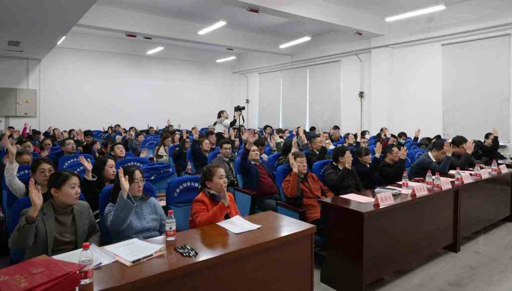 全体参会教职工通过举手表决的方式审议通过相关报告,与会同时采取线上方式填写二级教代会教职工满意度问卷调查。
