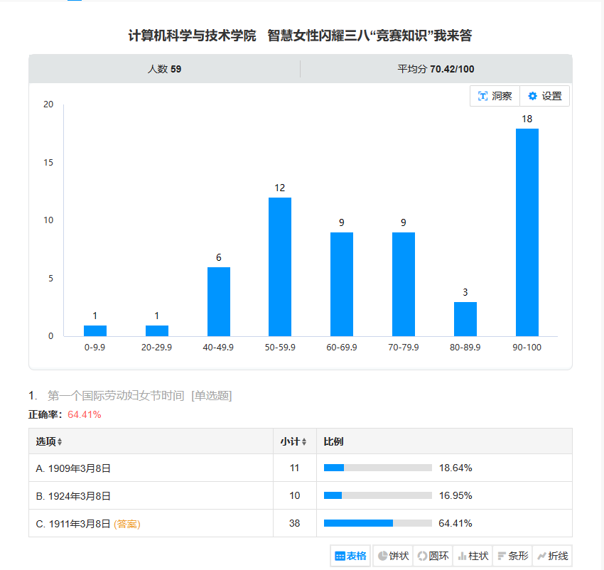 “智慧女性闪耀三八‘竟赛知识’我来答”线上活动同步进行,广大学院女性教职工踊跃参加。