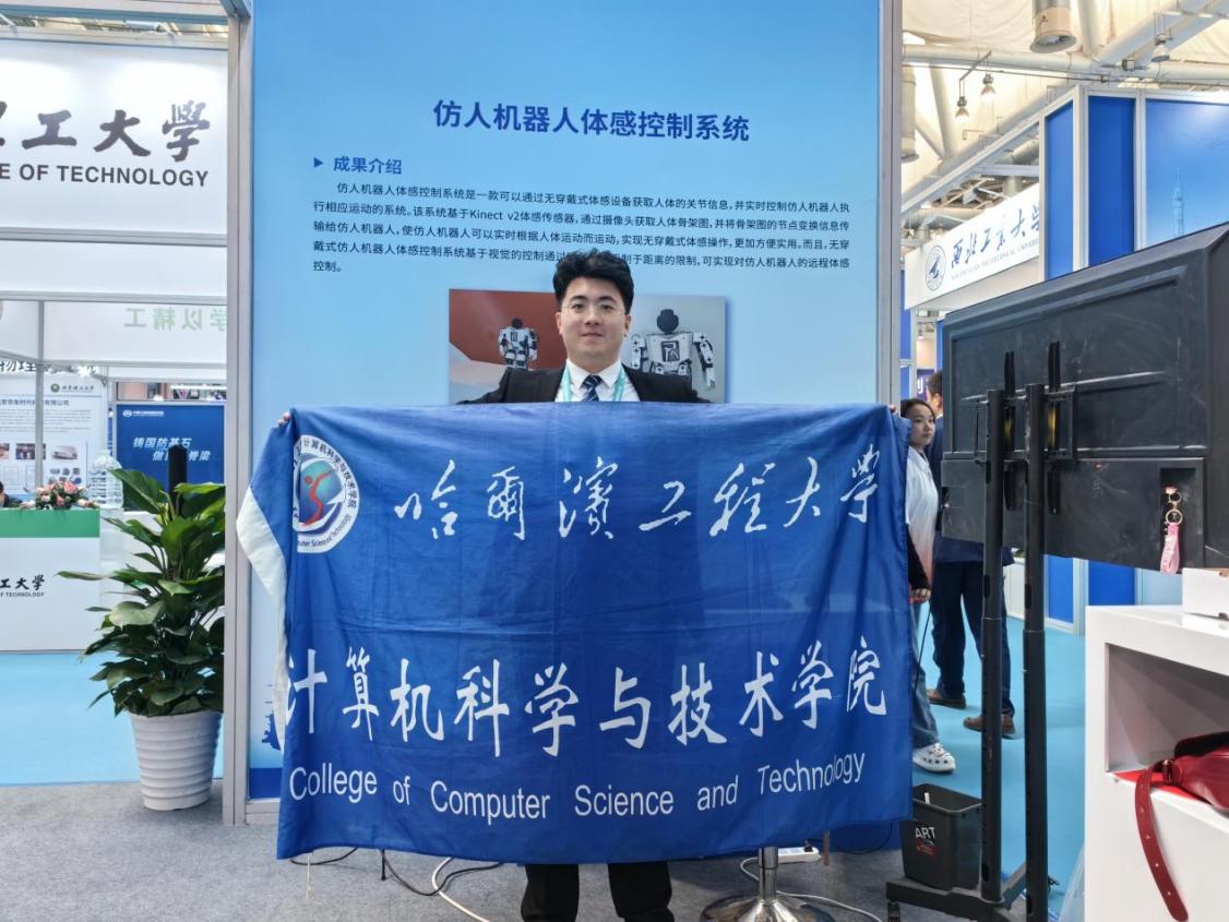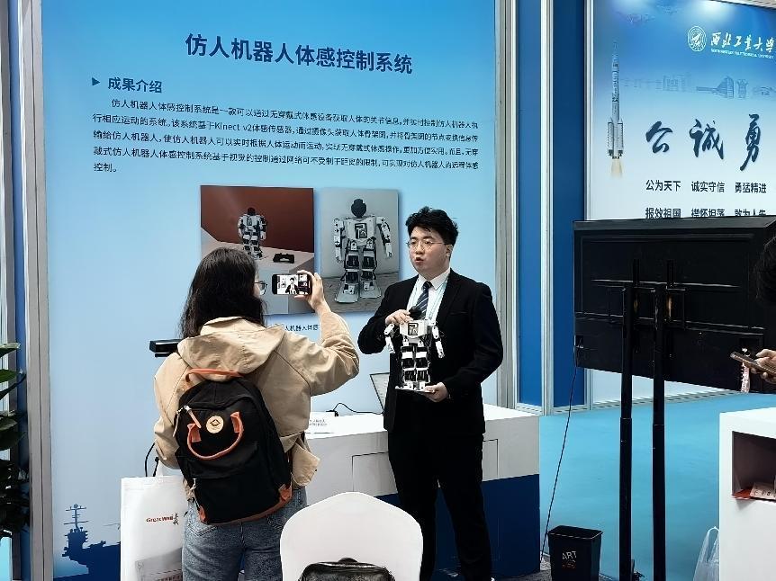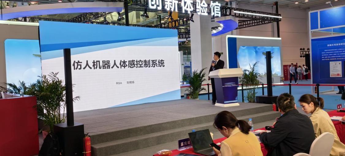 为贯彻落实党的二十大“提高科技成果转化和产业化水平”精神,推动先进技术成果转化应用,助力国防科技工业和地方经济社会高质量发展,第二届先进技术成果转化大会(以下简称大会)于2024年4月8日至4月11日在苏州国际博览中心举办。参加大会的单位包括各军工集团公司、中国工程物理研究院、工业和信息化部所属高校、国家国防科工局共建高校以及有关成果供给单位。欧冠官方网站机器人仿真创新实验室(以下简称实验室)受邀参加了此次大会,研究生刘明烁代表实验室赴苏州参加展览和路演,在欧冠官网中文版展区展示仿人机器人体感控制系统。