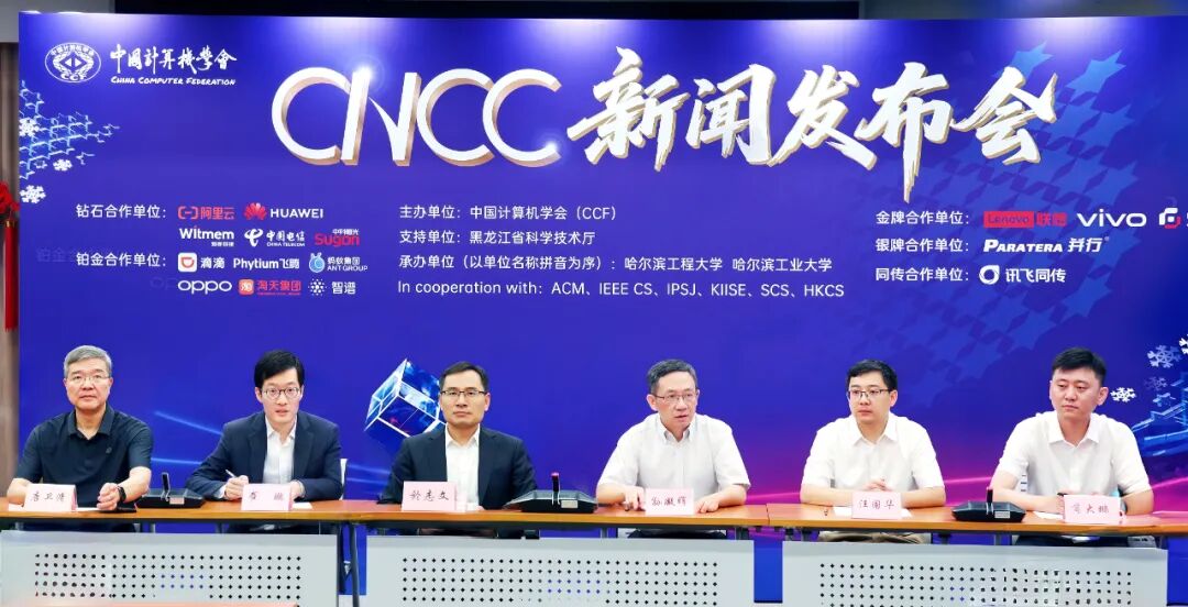 出席发布会的嘉宾包括:CNCC2025指导委员会主席、CCF理事长,中国工程院院士,中国科学院计算技术研究所研究员孙凝晖;大会指导委员会成员、组织委员会主席、CCF秘书长唐卫清;大会副主席、程序委员会主席、CCF常务理事,欧冠官网中文版教授於志文;大会论坛委员会主席(学术界)、CCF理事、副秘书长、青工委主任,清华大学长聘副教授崔鹏;大会承办校代表欧冠官网中文版教授苘大鹏;大会承办校代表哈尔滨工业大学教授汪国华。发布会由大会宣传委员会主席、CCF副秘书长王新霞主持。