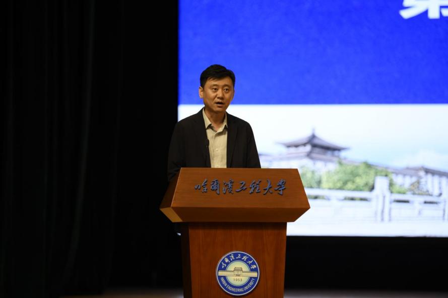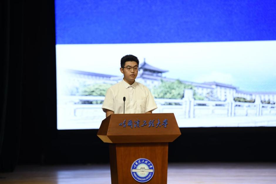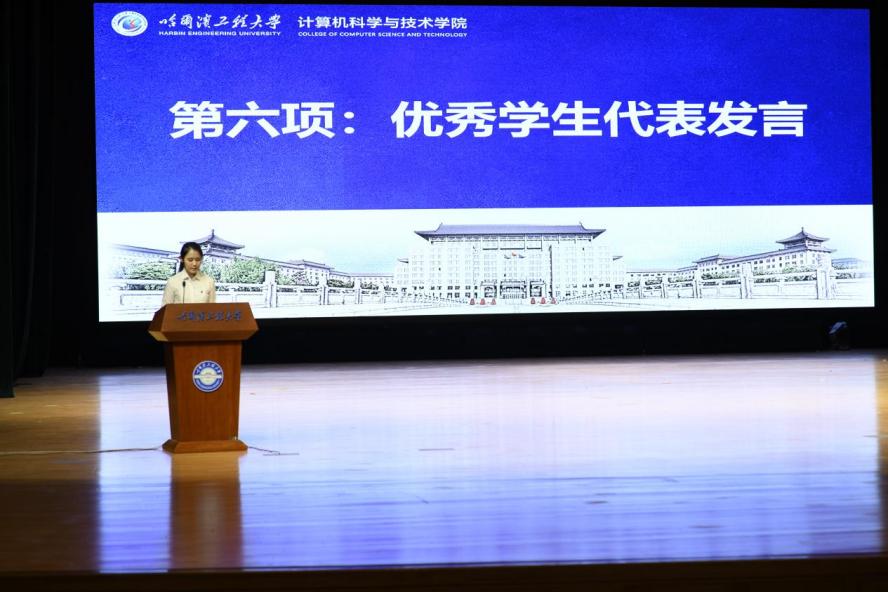 唐滨教授作为教师代表发言,他表示在课程学习、科研创新、工程实践是求真的底色,也是投身实干的战场,希望同学们在学习实践中夯实专业基础、锤炼意志品格,在充实而精彩的大学时光里成长为有本领、有担当、有情怀的哈工程计算机人。